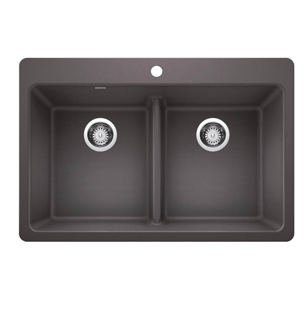 Every space deserves to be beautiful. BLANCO’s LIVEN 33'''' 50/50 double bowl kitchen sink is ideal for multitasking, with a convenient double bowl configuration that allows you to soak dishes in one bowl while rinsing in the other. The convenient low divide makes maneuvering large pots and pans a breeze. Made of SILGRANIT, LIVEN kitchen sink