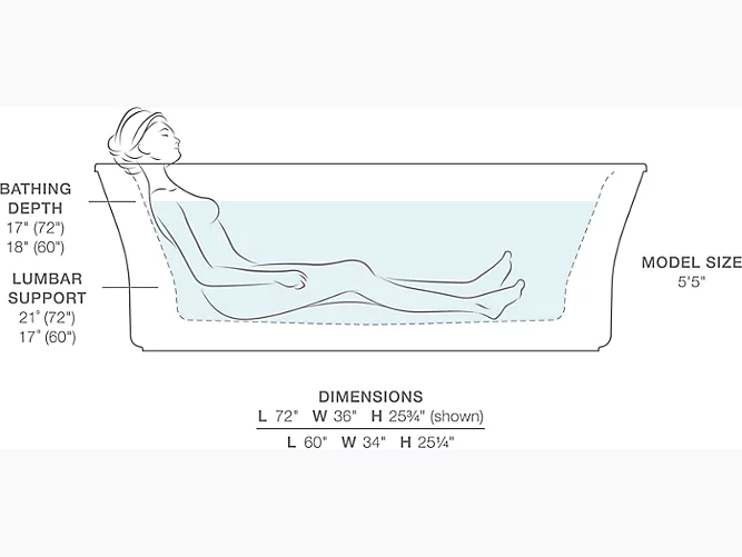Create a luxurious centerpiece for your bathing area with the Stargaze freestanding bath. Made for deep soaking and relaxation, the ergonomic design provides lumbar support at both ends, so you can stretch out in full comfort as the Bask heated surface warms your back, shoulders, and neck. With its crisp, clean lines and straight shroud, this versatile bath complements a wide range of bathroom styles and offers easy three-step installation.