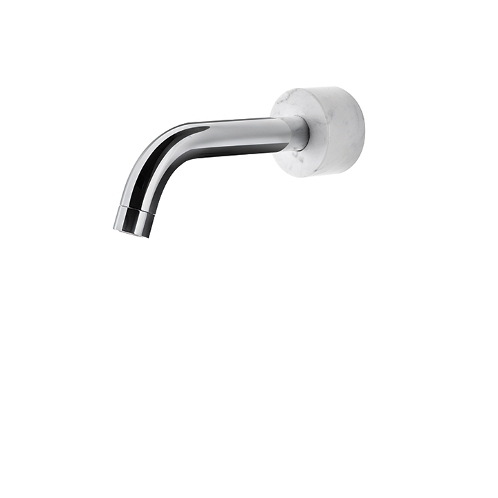 solid brass construction white carrara marble crystal clear water flow non diverter spout 1/2” connection can be combined with Aquabrass shower components height: 3 13/16" overall projection: 8 5/16" flow rate: depends on capacity of the valve