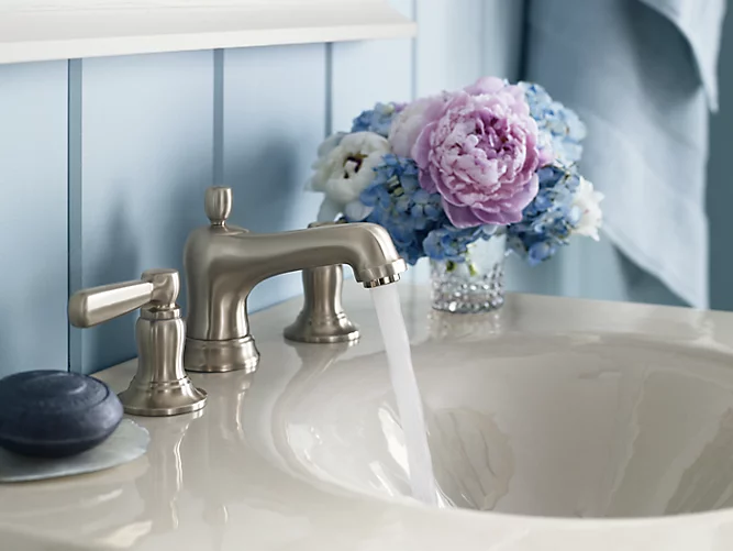 Inspired by the traditional elegance of early 1900s American design, Bancroft brings a classic silhouette to the bathroom. This Bancroft bathroom sink faucet features two metal lever handles for precise temperature control, and a slightly curved spout with an aerator. Easy-to-install and leak-free UltraGlide™ valves and a pop-up drain and tailpiece complete the set.