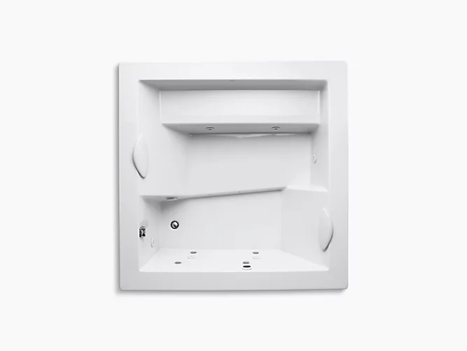 With two distinct bathing wells of different depths and a cool-off area, this whirlpool lets you create your own home-spa experience for two people. Individually adjustable jets offer a range of options for gentle or invigorating water massages, and chromatherapy lights permeate the bath, allowing you to change the atmosphere as you please. A built-in heater ensures the water remains at the perfect temperature for a truly relaxing, customized experience.