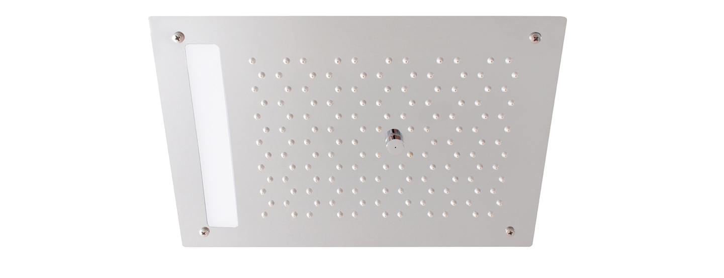 2 functions: rain, mist chromatherapy: 7 colors with adjustable light program waterproof wallmount remote control for chromatherapy included stainless steel construction thermostatic valve required (minimum of 2 volume controls) flow rate: varies between functions