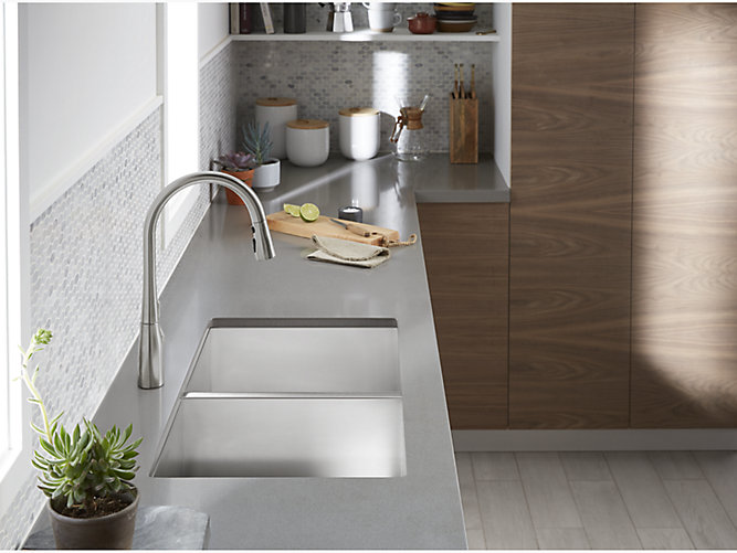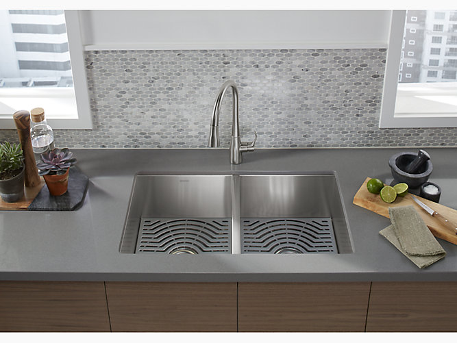Give your kitchen a professional, sophisticated feel with the clean, contemporary lines of the Ludington kitchen sink. With deep bowls, included accessories and multiple styles to choose from, it?s the perfect choice for any kitchen?especially in the home of people who love to cook. SilentShield? technology, an exclusive sound-absorbing system, reduces noise and vibration. Feature