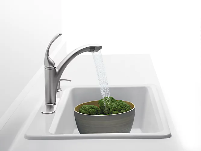 The understated beauty of this Riverby sink makes it an elegant and versatile addition to the kitchen. A single, large bowl provides ample space to soak and wash cookware, while a sloped base to a single offset drain minimizes water pooling. Crafted from enameled cast iron, this sink resists chipping, cracking, or burning for years of beauty and reliable performance. It comes with a custom-fit colander with integral cutting board and a left-hand, stainless-steel bottom sink rack.