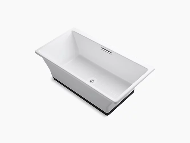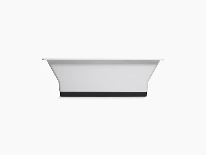 The Rêve freestanding bath adds a striking focus to your bathroom and doubles as a bold, sculptural work of art. A generous bathing well, dual lumbar support, and slotted overflow accommodate a deep, relaxing soak. The exterior ground coat surface is minimally enhanced and painted to capture as much of the raw elements of the cast iron material.This modern cast iron bath contrasts beautifully with its wood composite base, which is painted a dark ash wood finish.