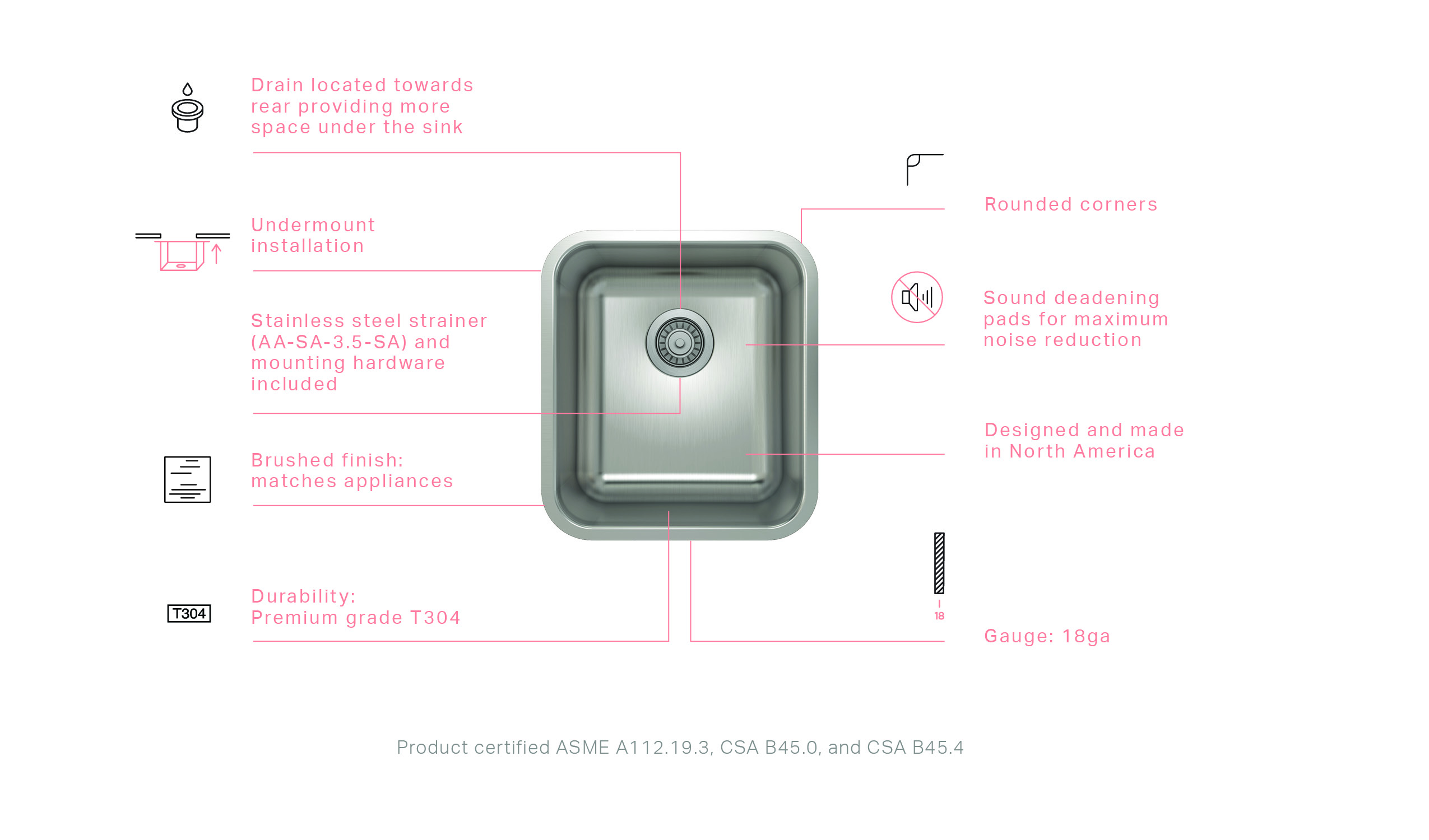 • 304 brushed finish stainless steel (18/10) – 18 gauge