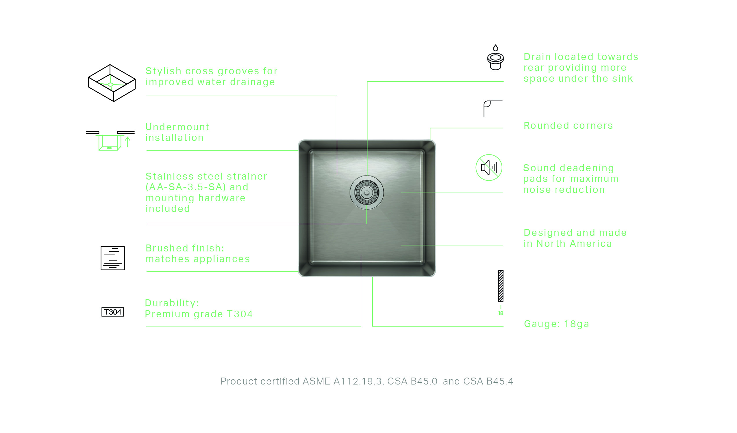 • STAINLESS STEEL – 18 gauge