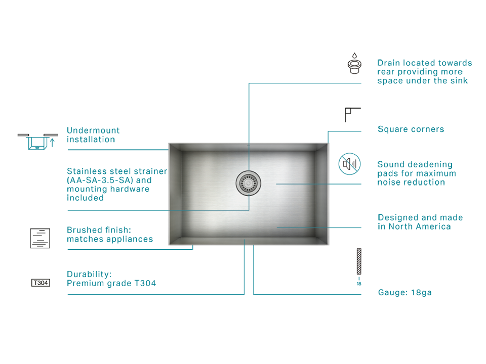 • SET INCLUDES: Sink, bottom grid, stainless steel strainer (AA-SA-3.5-SA), mounting hardware included, cutout template and reusable towel