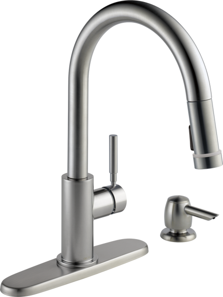 Delta® MagnaTite® Docking uses a powerful integrated magnet to pull your faucet spray wand precisely into place and hold it there so it stays docked when not in use. Delta® SpotShield™ Technology helps to keep your faucet cleaner, longer by resisting water spots and fingerprints. Keep your space spotless with SpotShield Technology, available across a variety of finishes for the kitchen and bath. Delta® faucets with DIAMOND™ Seal Technology perform like new for life with a patented design which reduces leak points, is less hassle to install and lasts twice as long as the industry standard*. Kitchen faucets with Touch-Clean® Spray Holes allow you to easily wipe away calcium and lime build-up with the touch of a finger. You can install with confidence, knowing that Delta faucets are backed by our Lifetime Limited Warranty. *Industry standard is based on ASME A112.18.1 of 500,000 cycles.