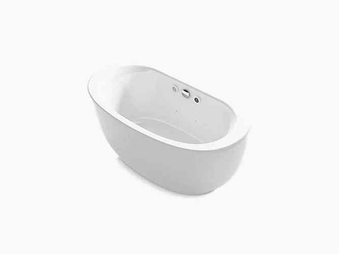 Completely surround your body in a soothing cushion of heated massaging bubbles in this Sunstruck® freestanding air bath. With airjets pushing humidified air through the water, this bath delivers a blissfully warm, invigorating full-body massage experience, while the heated surface warms your back, shoulders and neck. The oval, ergonomic design supports your body for a deep, relaxing soak. With its gracefully shaped lines and fluted shroud, this versatile bath complements a wide range of bathroom styles and offers easy three-step installation.