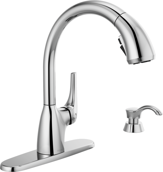 Delta MagnaTite Docking uses a powerful integrated magnet to set your pull down sprayer precisely into place and hold it there so it stays docked when not in use. Delta ShieldSpray Technology cleans with laser-like precision while containing mess and splatter. A concentrated jet powers away stubborn messes while an innovative shield of water contains splatter and clears off the mess, so you can spend less time soaking, scrubbing and shirt swapping. Delta kitchen faucets with DIAMOND Seal Technology perform like new for life with a patented design which reduces leak points, is less hassle to install and lasts twice as long as the industry standard. Kitchen sink faucets with Touch-Clean Spray Holes allow you to easily wipe away calcium and lime build-up with the touch of a finger. You can install with confidence, knowing that Delta kitchen faucets are backed by our Lifetime Limited Warranty.