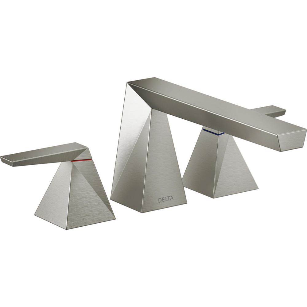 The prismatic faceting of the Trillian Bath Collection is an evolution of modern style that creates an edgy look which catches the light as well as the eye. Complete your bath with a beautifully designed Delta Roman Tub faucet. Our products are purposefully designed to simplify installation and enhance everyday use for all the moments that fo