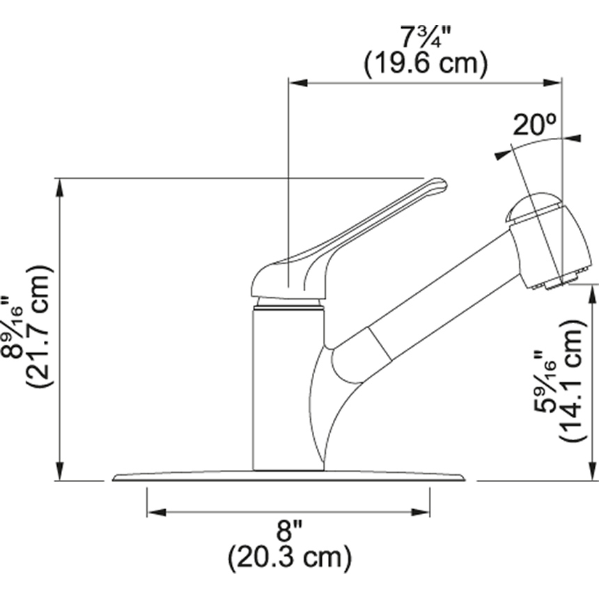 The Valais faucet is the perfect compliment to any sink. This dual functioning, pull-out spray head allows the user to toggle between full and needle spray without the need to reduce water pressure between modes.