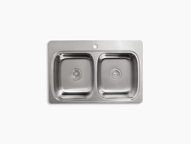 Verse™33" x 22" x 9-1/4" top-mount double-equal bowl kitchen sink with single faucet hole K-5267-1-NA-brand