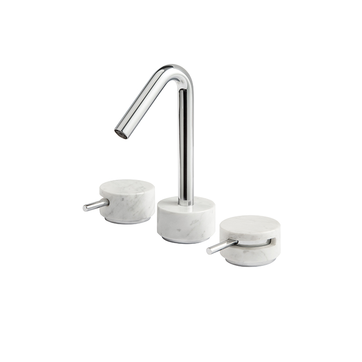 solid brass construction white carrara marble crystal clear water flow press pop-up drain with overflow included 1/2” connection height: 8 1/4" overall projection: 6 3/16" flow rate: 1.3 gpm