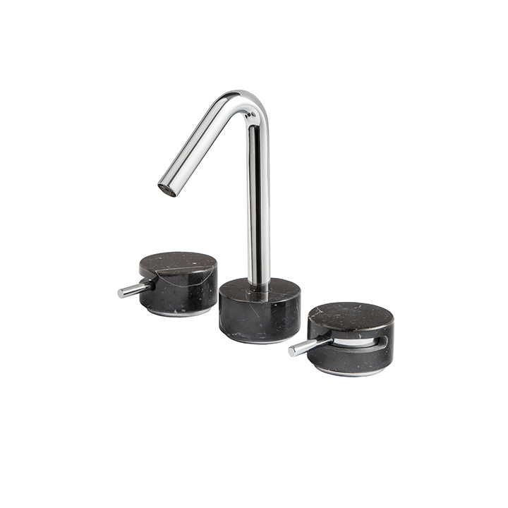 solid brass construction black marquina marble crystal clear water flow press pop-up drain with overflow included 1/2” connection height: 8 1/4" overall projection: 6 3/16" flow rate: 1.3 gpm